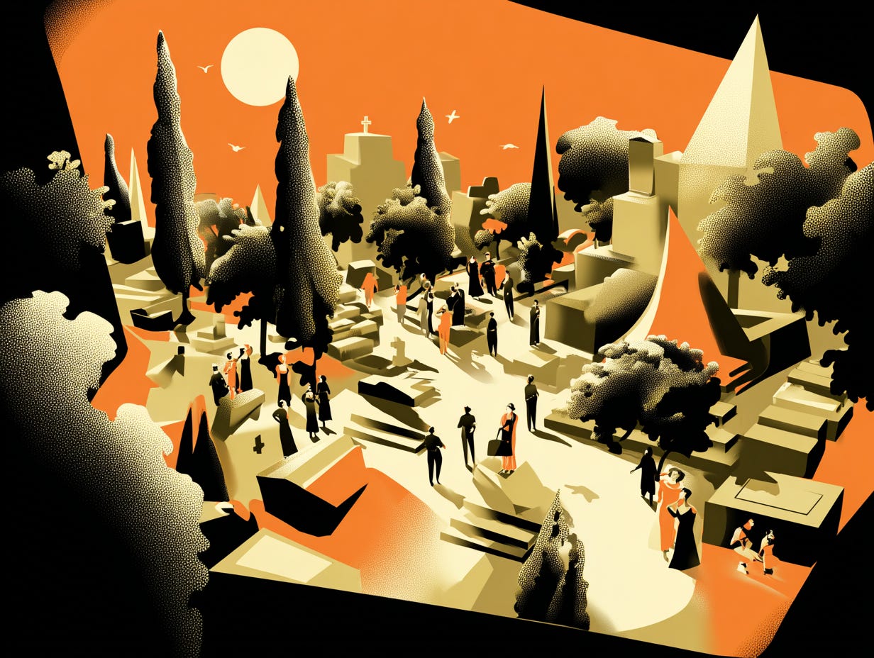Insomma, oggi sono andato al cimitero e mi sono guardato intorno e ho visto gente che si salutava, che chiedeva, che si dava appuntamento. Certo, quelli con un dolore ancora troppo grande e troppo recente erano molto più silenziosi, non solo con le parole ma con i corpi, i movimenti.